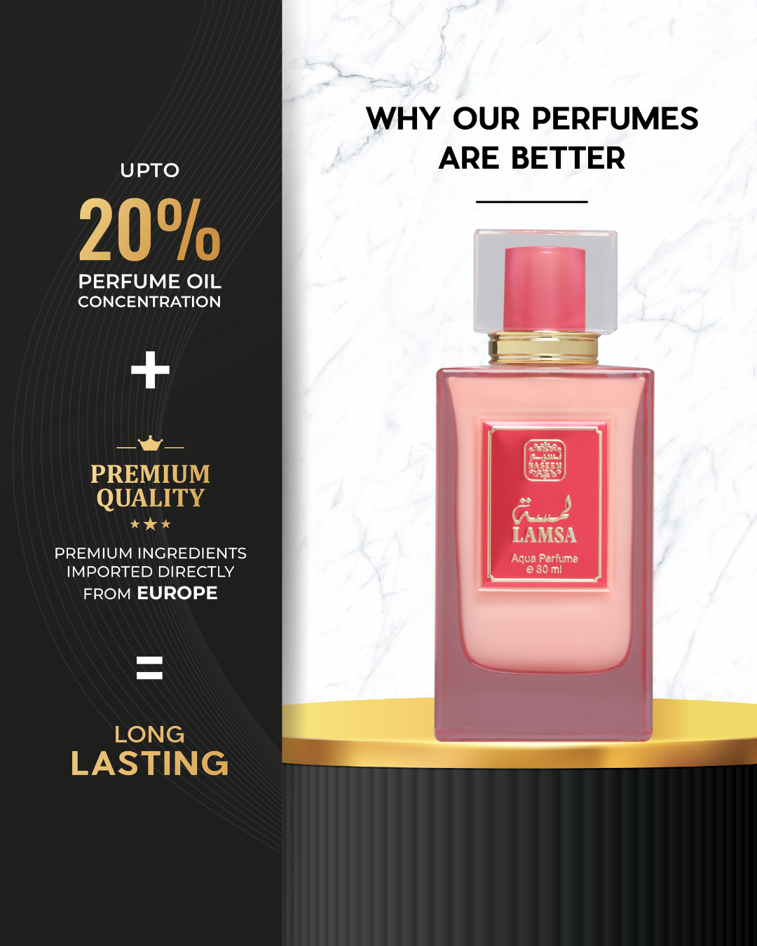 Inspired by the feminine allure, Lamsa is a sensual fruity-floral fragrance that is sure to enamour.
