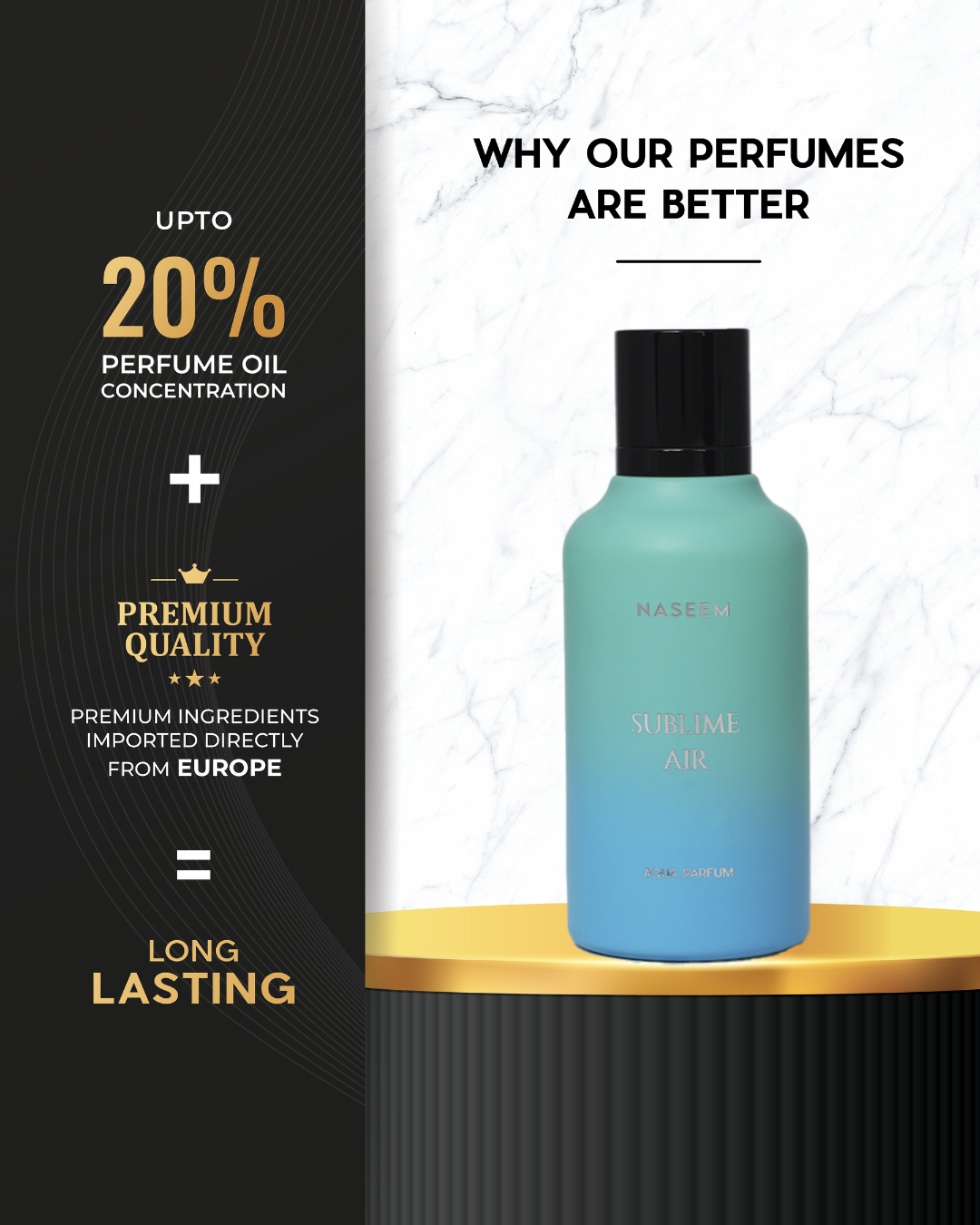 Sublime Air is a refreshing woody-fruity fragrance that opens with a lively burst of blackcurrant, grapefruit, and lemon, offering a zesty and uplifting start.